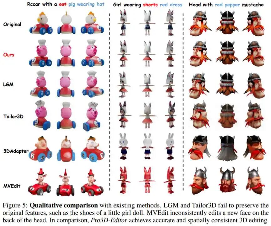 - 显著减少了多视图编辑时编辑特征不一致的情况,提高了3D物体编辑的质量。