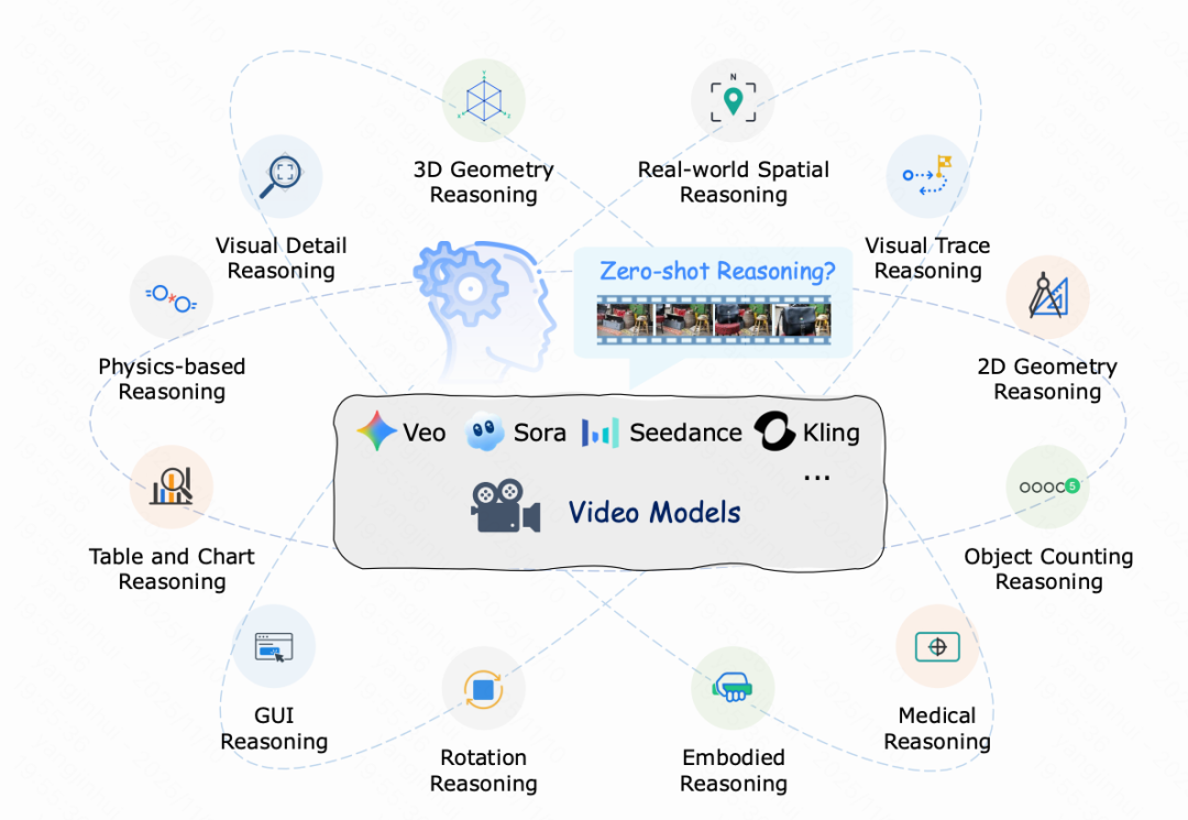 其核心思想在于:视频模型通过逐帧生成过程,构建连贯的视觉演化,从而体现思维与推理的过程。然而,一个关键问题仍悬而未决——这些模型是否真的具备零样本推理(Zero-Shot Reasoning)能力?还是仅仅在模仿训练数据中的表层模式?