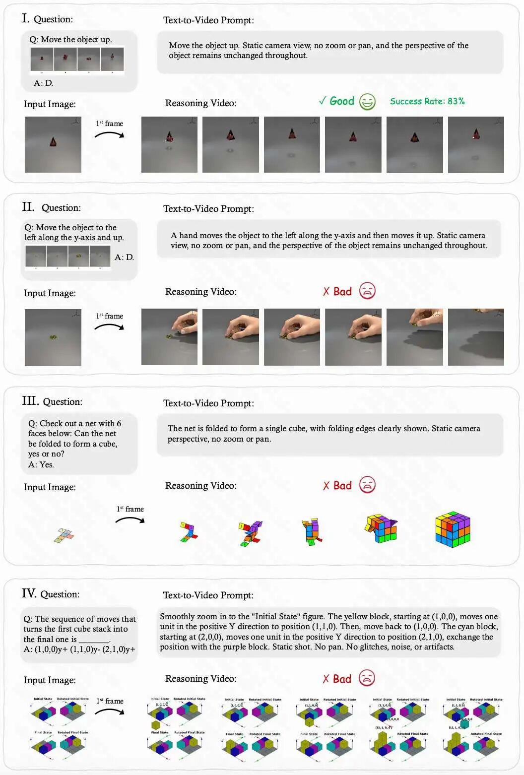 - 目标: 评估模型在立体折叠、旋转与重构任务中的结构理解。