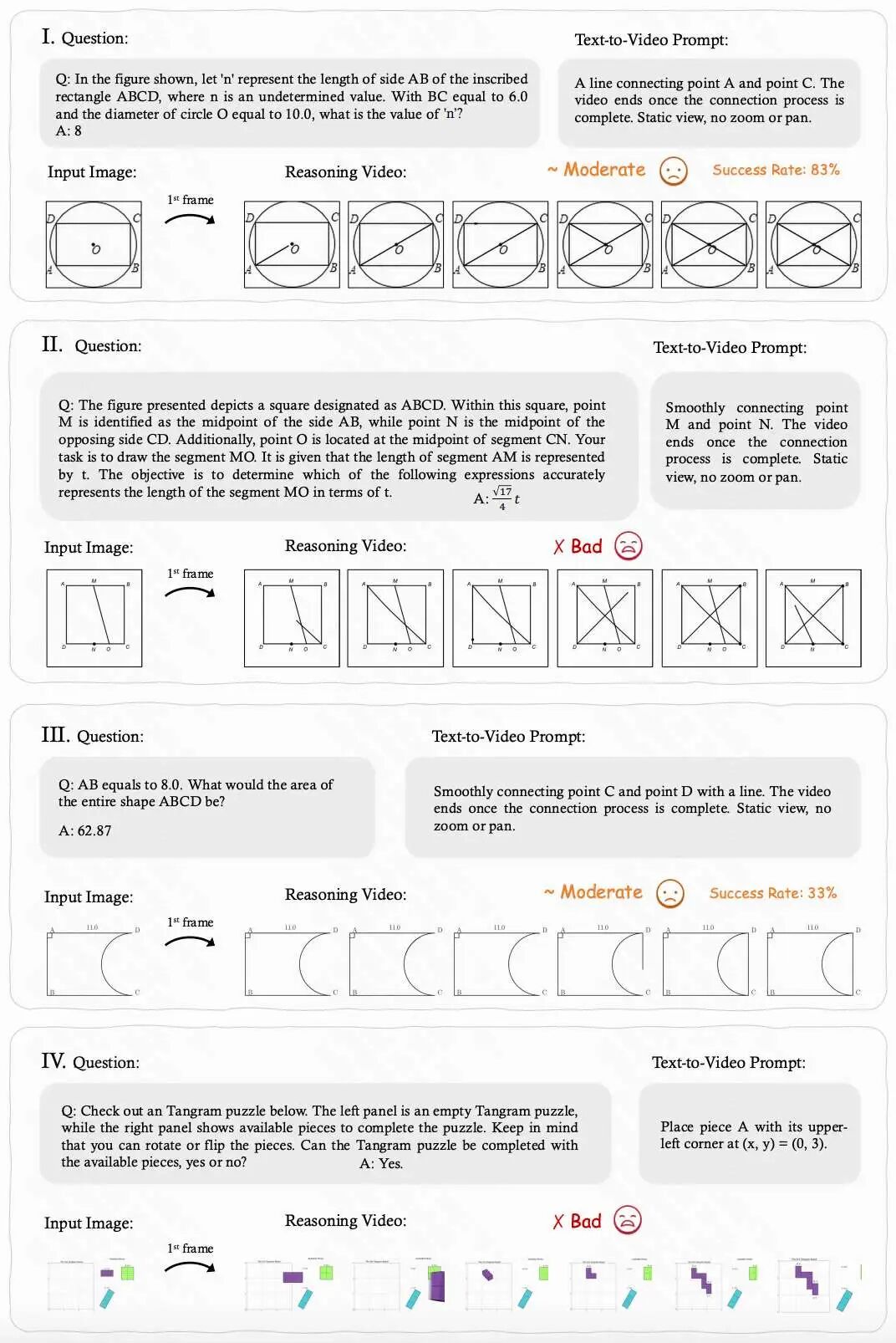 - 局限: 更倾向生成“好看”的图形而非“正确”的几何,易出现逻辑顺序错误。