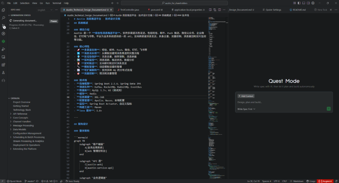 Qoder-Repo Wiki,你的源码阅读神器,一键吃透你的整个代码库,并生成项目的完整介绍,包括技术栈、API、业务逻辑件处理的架构、系统架构图,对项目工程的理解从一周缩短为一小时。
