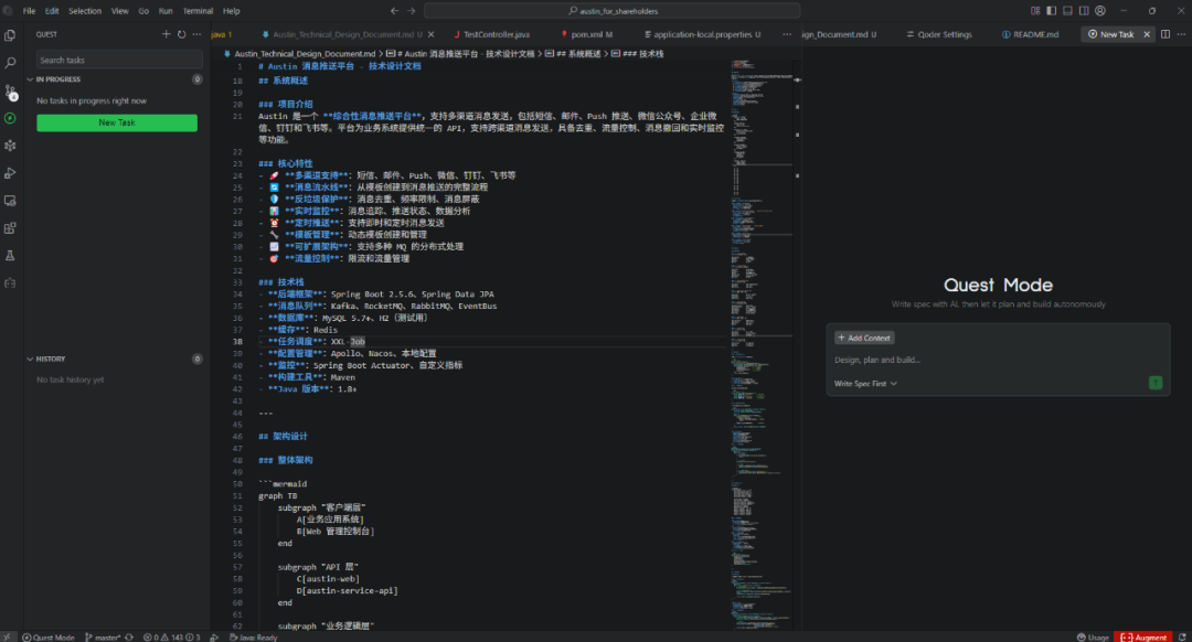 整体感觉Qoder这款IDE很不错,比传统IDE安装插件使用AI工具要好用,我最近也在思考,提示词这种方式是很有局限性的。只有工具的升级才能进一步解决软件开发的真正挑战:让不可见变得可见、加强人类与人工智能之间的知识协调、消除技术债务和协作摩擦将开发人员从重复性工作中解放出来,让他们专注于创新。