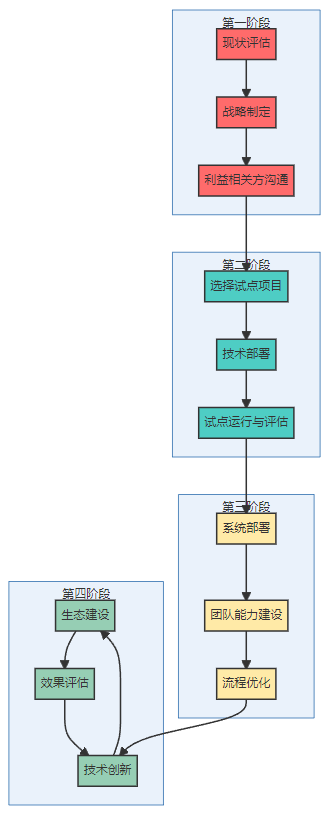 以下流程图展示了传统企业AI安全转型的完整实施路径,从评估规划到持续优化的四个阶段: