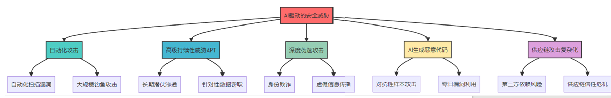 技术层面 | 缺乏AI驱动的威胁情报分析 | 无法实时检测新兴威胁,如AI生成的内容攻击;原有安全工具陈旧化 | 高 |