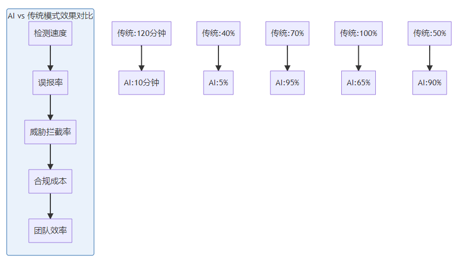 以下柱状图对比了传统安全模式与AI安全模式在不同关键指标上的表现:
