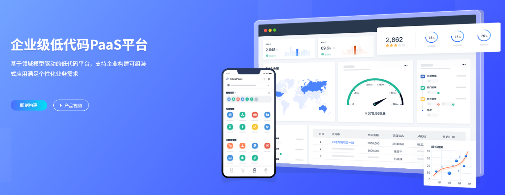 平台简介: ClickPaaS是国内领先的模型驱动低代码平台提供商,专注于为企业和政府客户构建高复杂性、高性能要求的核心业务系统,在工程建筑、智能制造、产业互联网等领域有深入应用。