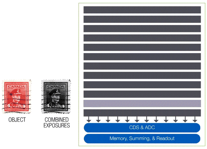 TDI是一种线扫描方法,与其他面阵技术相比,其响应度显著提高。该法能够在低光环境下实现更高的扫描速度,或在常规速度下降低照明水平(和成本)。在晶圆、PCB和LCD面板检测以及高端文档扫描等多个领域。