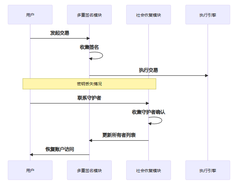 }在结合多重签名和社会恢复机制时,需要特别注意两者之间的交互安全性: