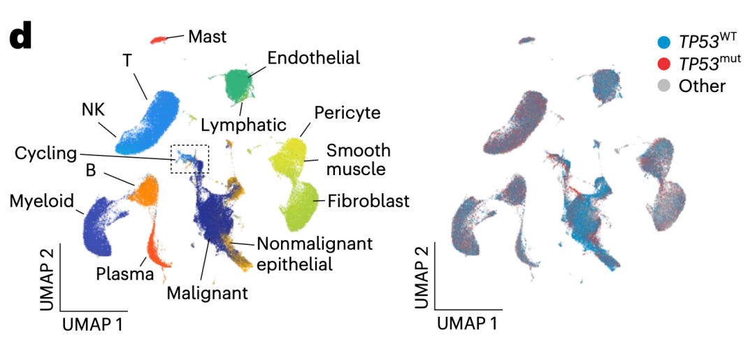 我首先使用人工智能大模型帮我汇总了这个研究的组学方面,就是系统刻画了 TP53 突变型 vs 野生型肺腺癌(LUAD)的 单细胞转录组 + 空间转录组 + 多重免疫荧光 + 全外显子组多组学图谱: