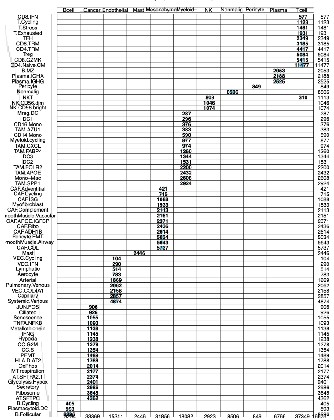 # 结果:行名 = subtype,列名 = celltype,值 = 计数
