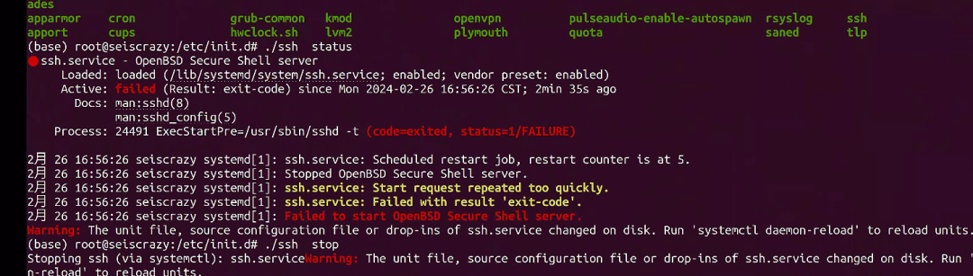 systemctl stop ssh.service //关闭由systemctl控制的ssh启动