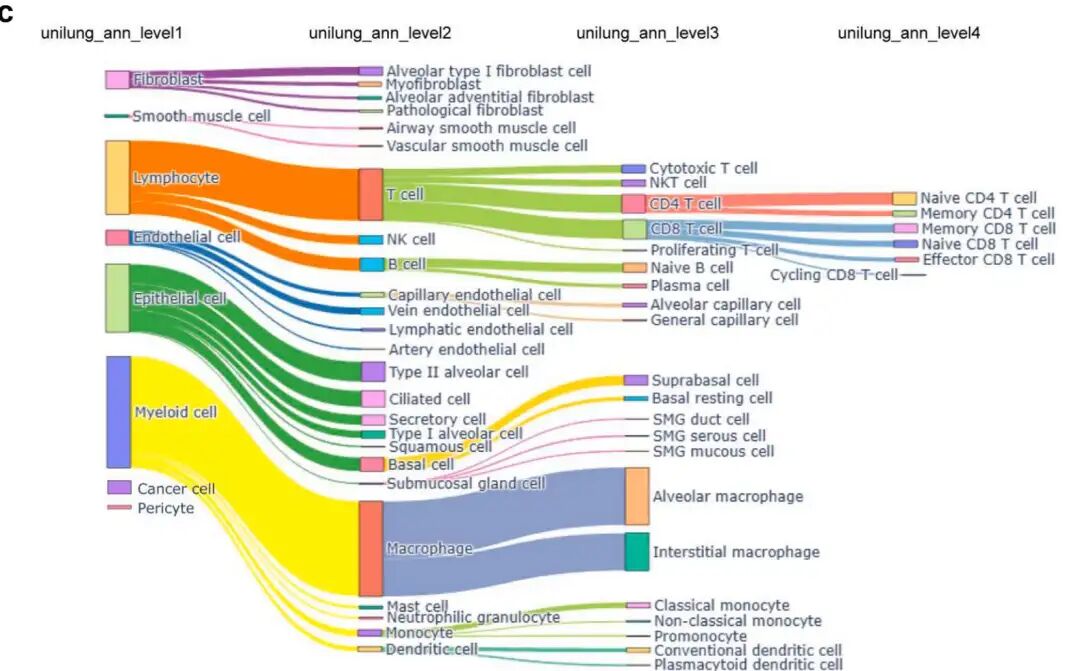 uniLUNG核心数据集中细胞类型的层级分布情况: