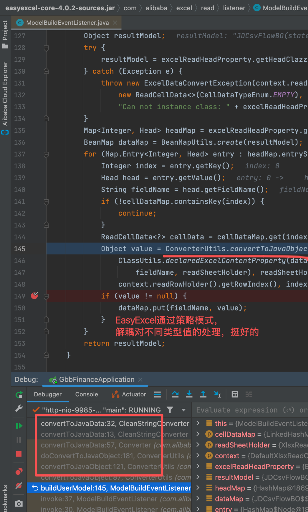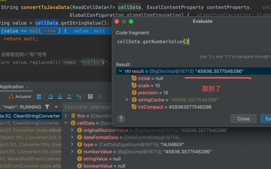 com.alibaba.excel.metadata.data.ReadCellData对象中,不同CellType的数据存放在不同的字段,譬如stringValue存放STRING类型的CellValue,譬如numberValue存放NUMBER类型的CellValue。