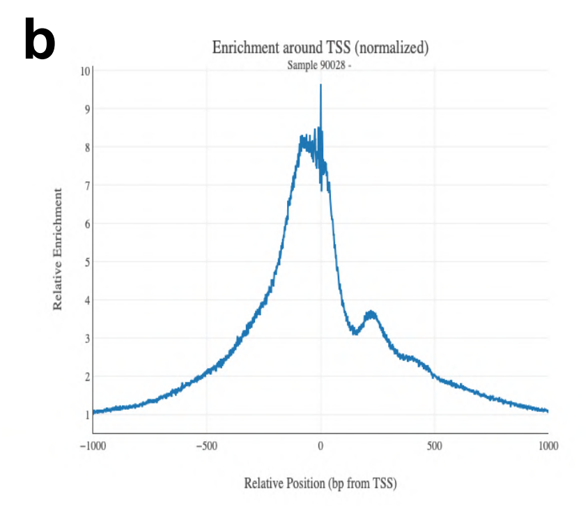 此图展示所有TSS上下游(例如±2 kb)区域平均的信号富集情况。高质量的样本会呈现出一个以TSS为中心的、尖锐的峰值。
