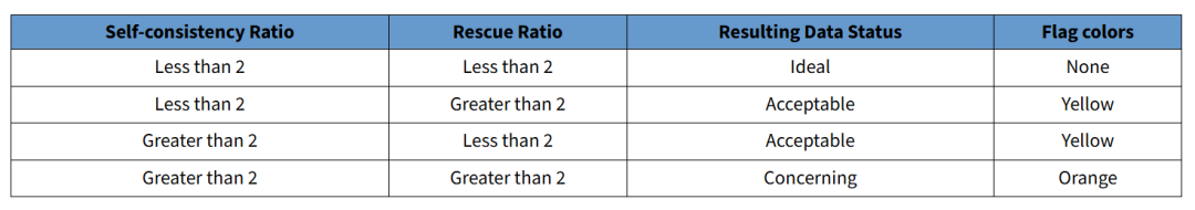 自洽比率 The self-consistency ratio —— 用于衡量单个数据集内部的一致性。挽救比率 The rescue ratio —— 当单个实验内的重复样本之间缺乏可比性时,用于衡量不同数据集之间的一致性。