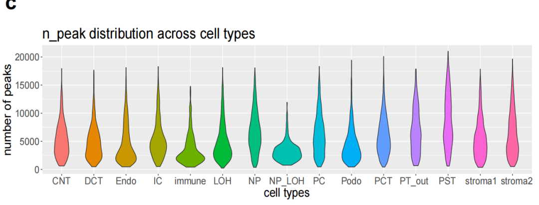 文献中常见的QC图:不同细胞类型鉴定的peaks数