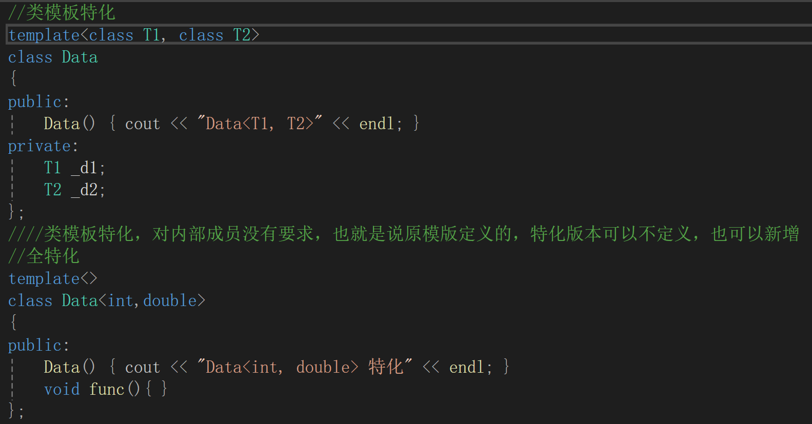// Data() { cout << "Data<int, double> 特化" << endl; }