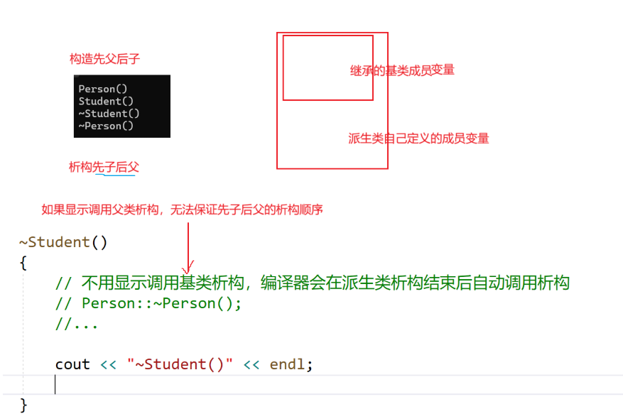 //本质可以把派生类当作多了一个自定义类型成员变量(基类)的普通类,跟普通类原则基本一样
