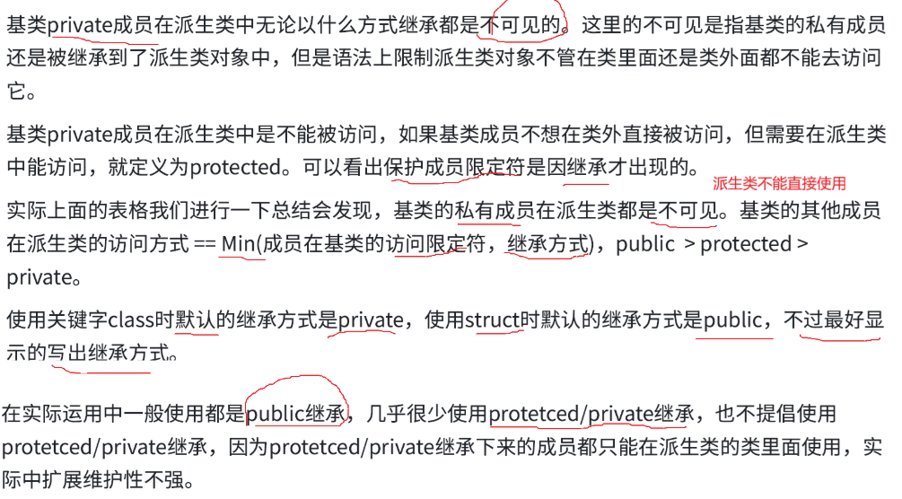 // //基类私有成员,派生类不可见,语法上限制不能直接使用