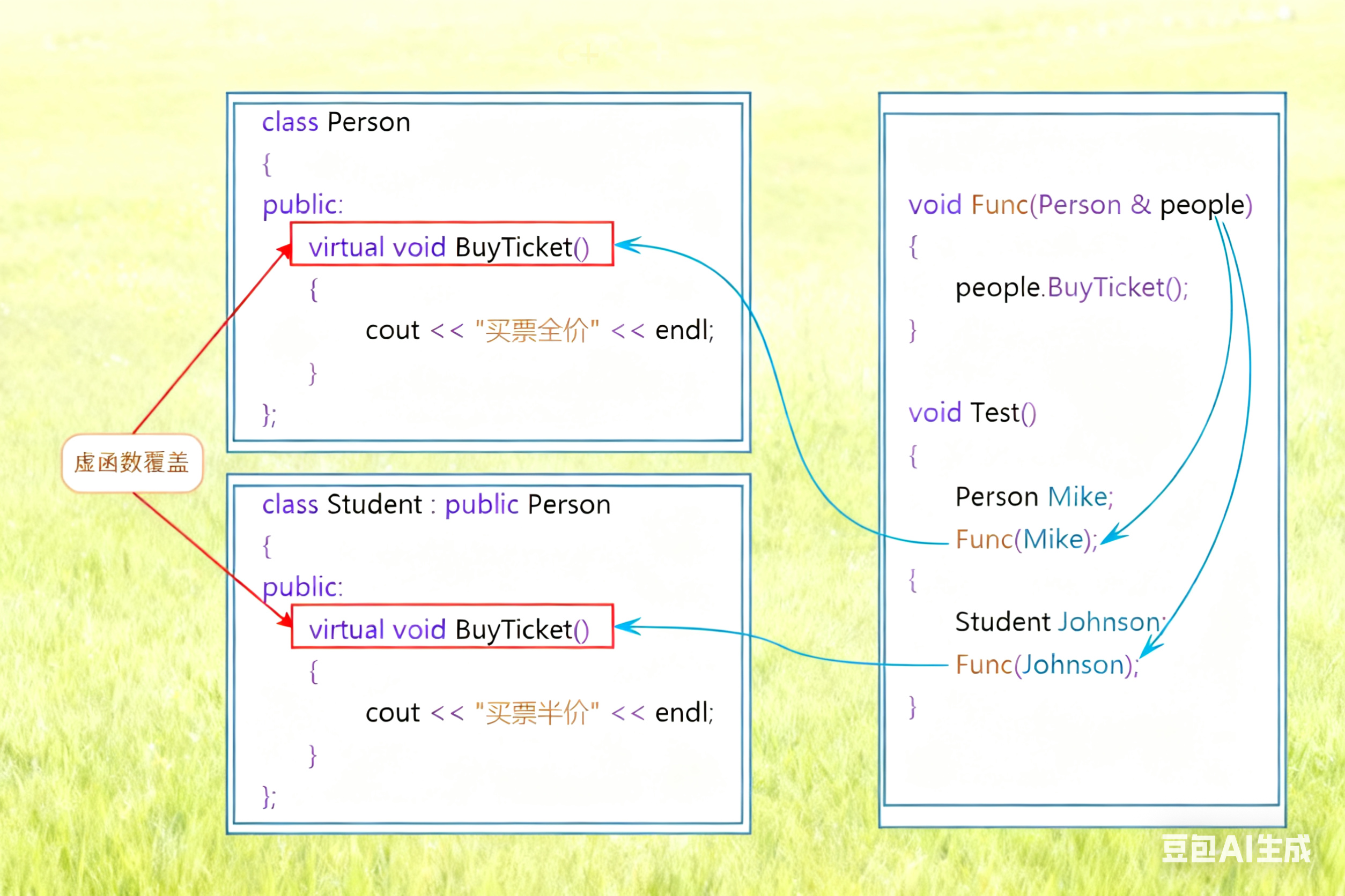 // // 这⾥可以看到虽然都是Person指针Ptr在调⽤BuyTicket