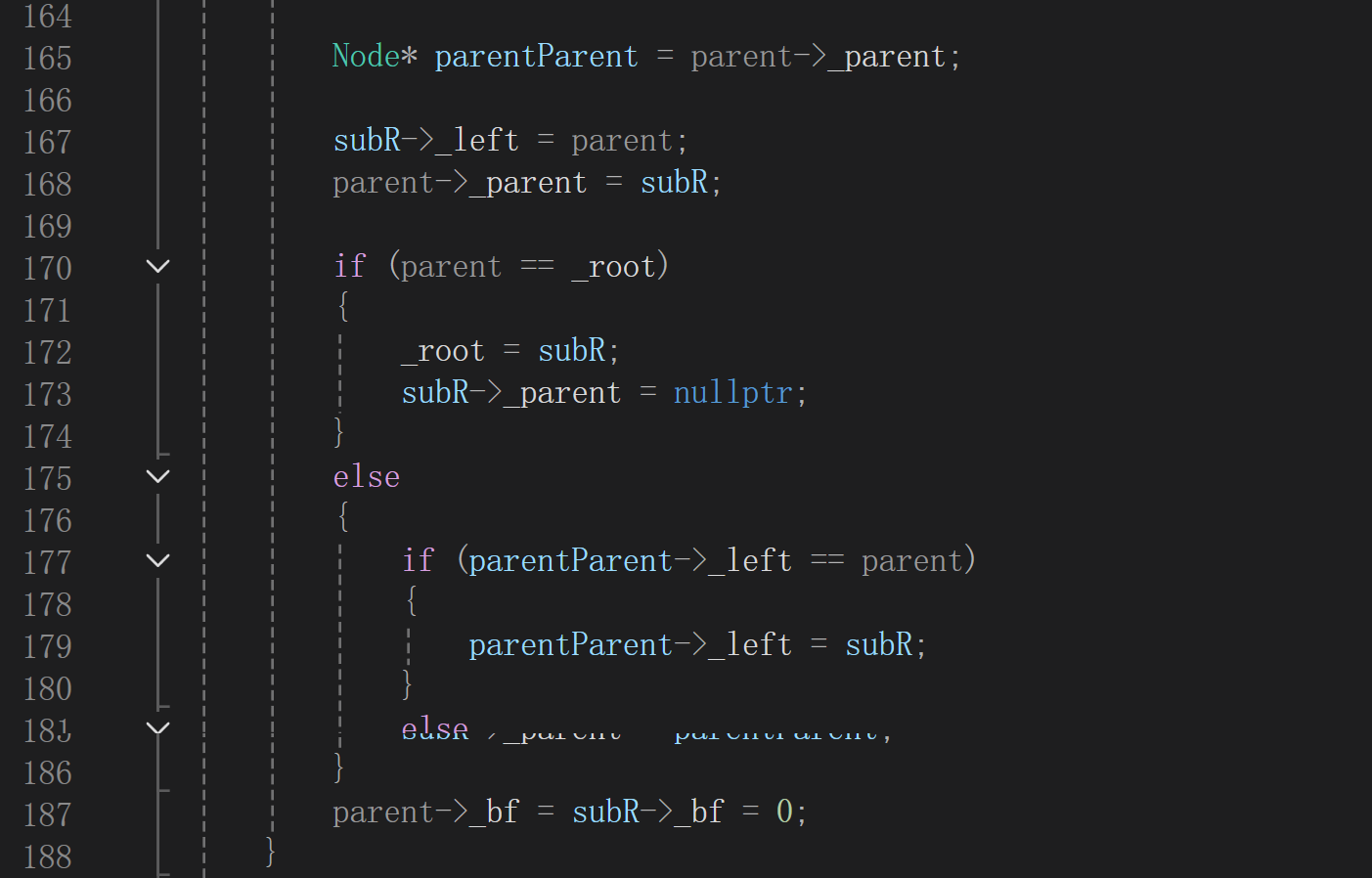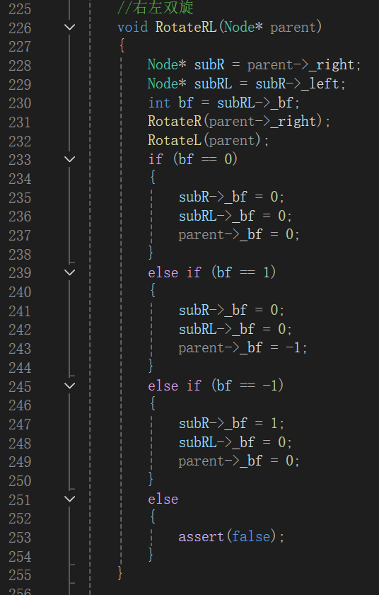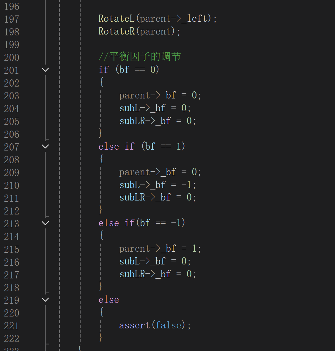 else if (parent->_bf == -2 && cur->_bf == 1)