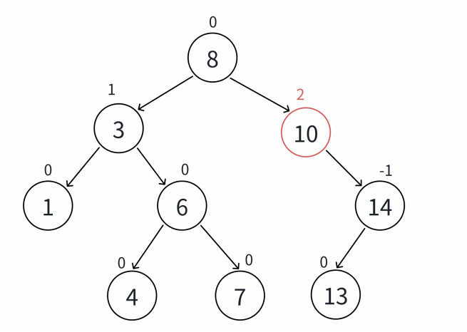 更新到10结点,平衡因子为2,10所在的子树已经不平衡,需要旋转处理