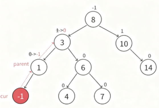 else if (parent->_bf == 2 && cur->_bf == -1)