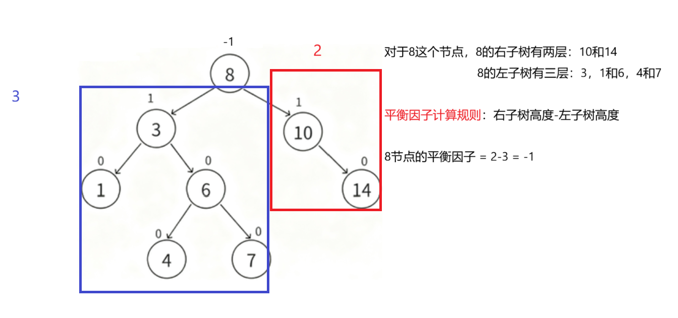 平衡因子: 每个结点都有一个平衡因子,任何结点的平衡因子等于右子树的高度减去左子树的高度,也就是说任何结点的平衡因子等于0/1/-1,AVL树并不是必须要平衡因子,但是有了平衡因子可以更方便我们去进行观察和控制树是否平衡,就像一个风向标一样