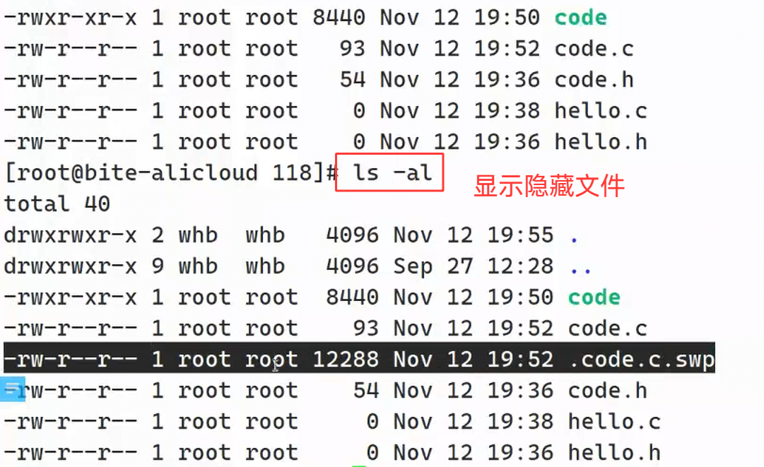 当我们查看文件时 ls -al:查看隐藏文件,就可以看到这个临时文件了