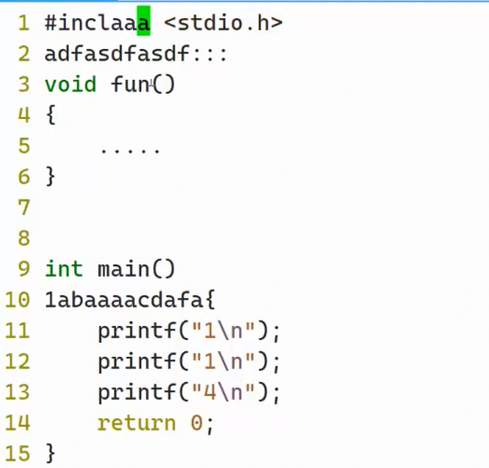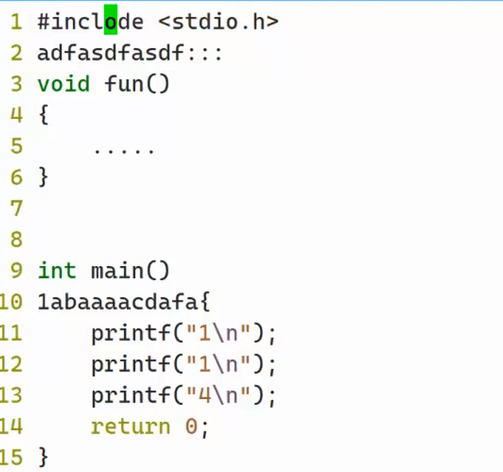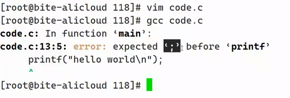 当我们退出vim时,光标所在的位置默认就是退出vim时所在的那一行,而当我们使用gcc编译代码时,如果报错时,如图:第13行少了个“;”
