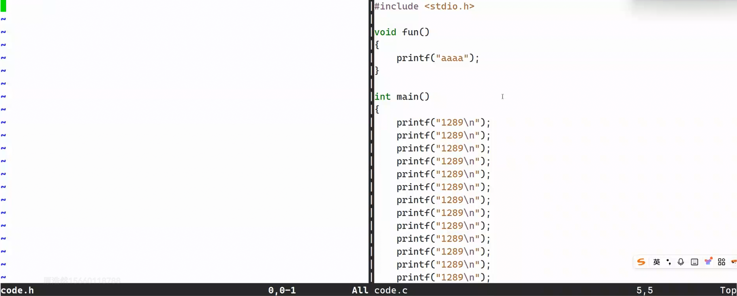 当我们写代码时,往往不止一个.c文件,通常还会有头文件等,当我们需要在头文件中声明时,需要反复使用vim进行文件切换,十分麻烦,那么有没有一种方法可以将窗口设置为“多窗口”,这样就不需要来回切换文件呢