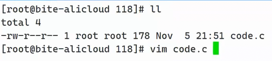 -rw-rw-r-- 1 yhr yhr 3 Nov 14 19:58 code.c