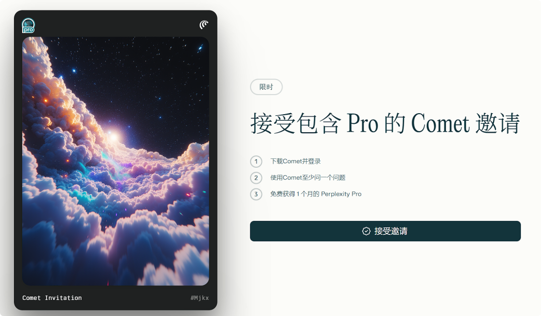 通过邀请链接[1] ,访问后注册账号,官方说能免费获得1个月Pro权限,不知道是真是假,如果没有后面介绍另外一种方法,本来就是薅羊毛,没薅到也不要生气哈。