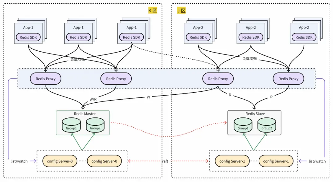自建Redis通过自研DRedis SDK,通过SDK直连 proxy,不再强依赖 LB,彻底解决 LB 瓶颈和稳定性风险问题,同时,DRedis SDK 默认优先访问同可用区 proxy,天然支持同城双活就近读。