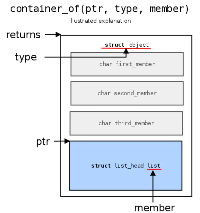 container_of 宏最经典的应用是在 Linux 内核的链表实现中