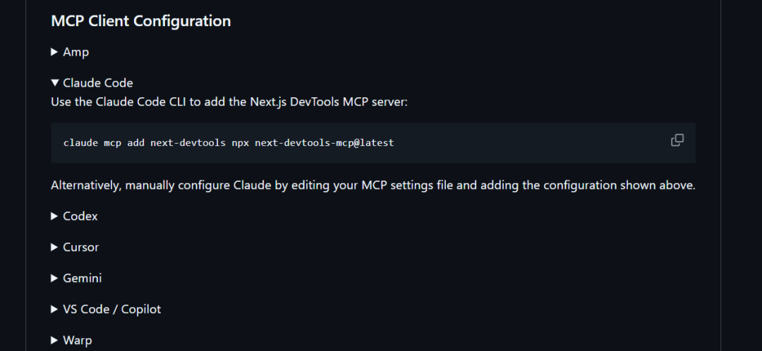 安装方式:https://github.com/vercel/next-devtools-mcp