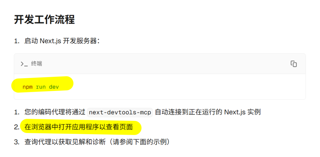 指南:https://nextjs.org/docs/app/guides/mcp#development-workflow