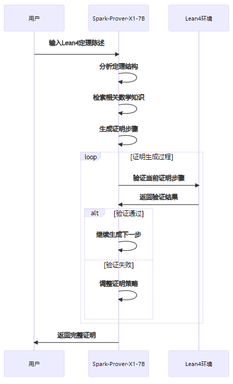 1 | 初始化模型 | model = SparkProverX1.from_pretrained('spark-prover-x1-7b') | 加载预训练模型 |