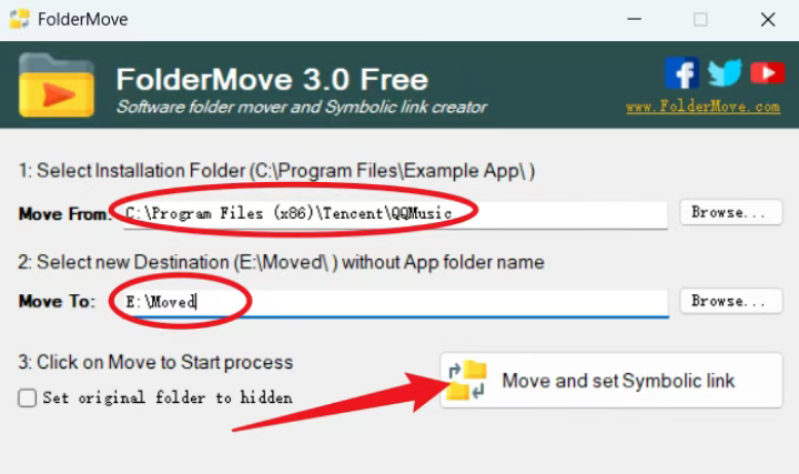比如我的QQ音乐安装在C盘,然后将C盘中的QQMusic文件夹移动到E盘Moved文件夹。