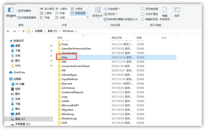 Help文件夹里就是一些系统帮助文件,可以帮助用户在使用过程中解决遇到的问题,如果不需要的话,是可以删除的。