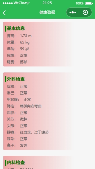 针对这一问题,本研究采用MySQL数据库技术,结合微信小程序开展设计,设计并实现了一个社区老人健康信息系统。该系统通过智能化操作,不仅降低了服务管理难度,还提升了管理的灵活性。系统涵盖了用户管理、健康信息管理、健康评估管理等功能模块,为用户建立一个个人化的医疗资讯管理平台。使用本系统后,用户可以更加容易地对自己的医疗资料进行查询与管理,管理员也能高效地获取和处理系统数据,为提升个人健康管理水平提供了有力支持。