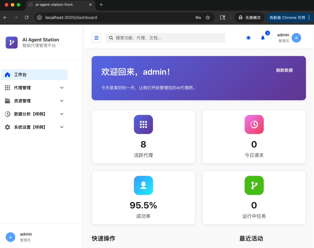 - 管理后台目前提供了,代理管理(拖拉拽编排方式配置智能体),资源管理(model、client、mcp、advisor、prompt)