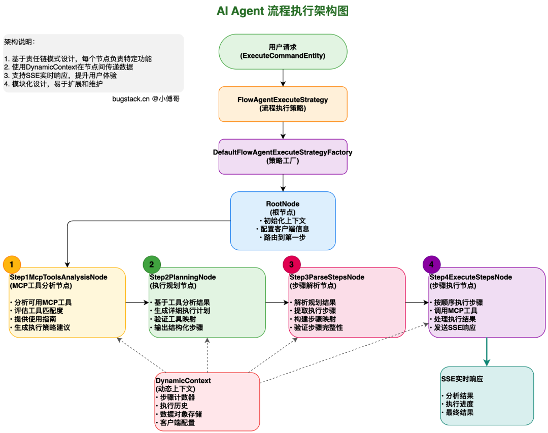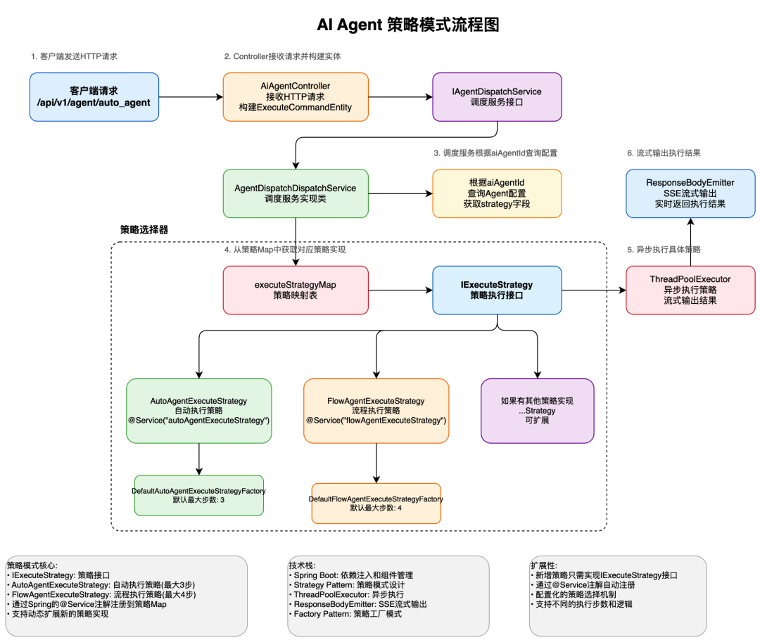 前面有伙伴问,为什么把实例化的对象写入到 Spring 容器,这里就是原因 - 客户端(UI),进行 POST 接口请求,这个过程需要封装一个 SSE 流式响应的接口,让 Step 1~4 各个执行步骤,把过程信息写入到流式接口。这里要注意,需要给接口返回的对象添加上对应的类型(什么步骤、什么节点、什么过程),以便于反馈给用户 Agent 在做什么。