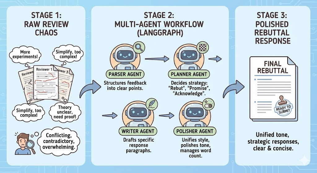 于是我干脆搭了一个Rebuttal Multi-Agent 小组,核心角色: