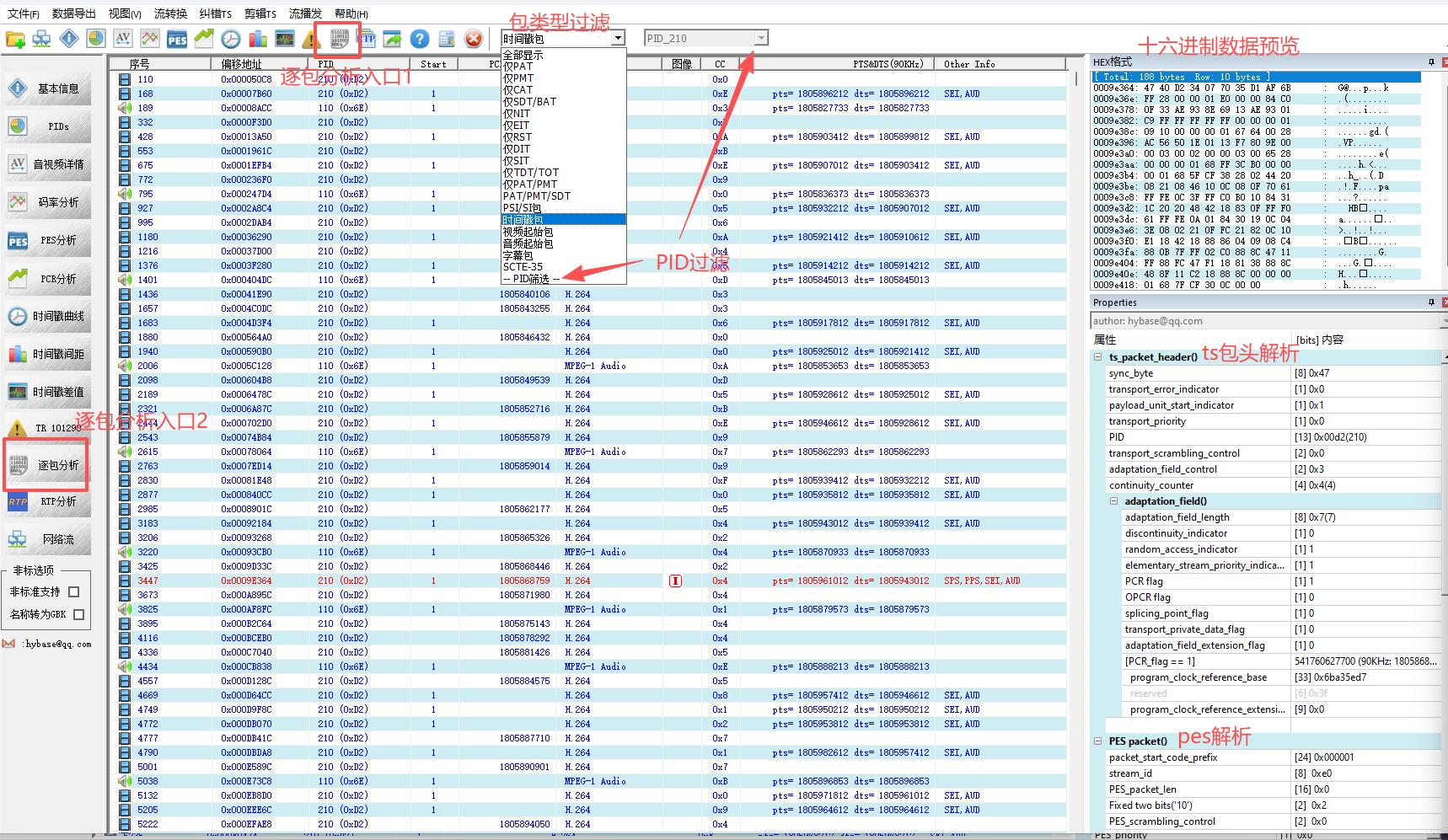 注释:本文是 hysAnalyser --- 逐包分析MPEG-TS的功能说明 优化补充和完善。