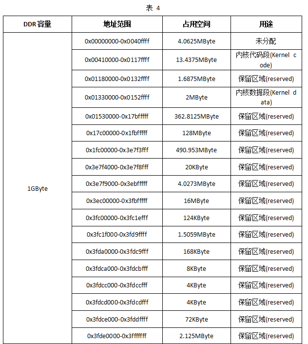 我司提供的Linux系统已对评估板DDR内存进行划分,具体配置说明如下表。