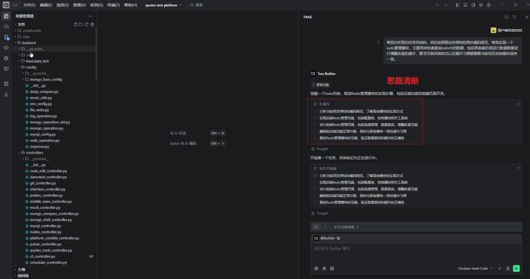 Doubao-Seed-Code:好的,我将第一个任务标记为完成,开始分析后端架构。