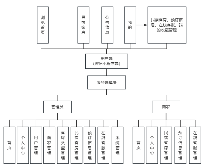 基于微信小程序构建的民宿预订系统旨在为用户打造一个全面、便捷的在线服务平台,其核心目标在于提供多样化的民宿客房选择、及时准确的公告信息更新,以及优化用户体验,从而实现高效、个性化的住宿预订服务。针对民宿管理与用户体验的需求,设计微信小程序的民宿预订系统主要聚焦于构建一个全面、便捷的在线平台。此系统旨在为民宿管理者与用户、商户提供无缝对接的服务,通过集成微信小程序的特性,实现高效、直观的预订流程,同时确保信息的安全性和隐私保护,从而全面提升民宿服务的数字化水平与客户满意度。用户能够通过微信小程序即时访问并浏览各类民宿客房信息。微信小程序的民宿预订系统,作为一款基于微信小程序操作系统的应用平台,实现了在微信生态内便捷提供住宿预订服务的功能。为了确保系统的兼容性和稳定性,我们选择了Spring Boot作为框架基础,该框架以其高效、轻量级的特点,显著提升了开发效率与应用性能。数据交互的核心环节,即用户与后台之间的信息存储,主要依托于MySQL数据库系统,其成熟稳定且功能强大的特性,为数据的可靠管理和高效检索提供了坚实保障。在应用程序的运行过程中,由用户操作生成的数据经由Java或其他兼容编程语言封装后,得以高效地传输并存储至数据库系统中。通过此策略优化微信小程序的民宿预订系统的信息流通与数据传输效能,构建一个内容丰富、功能全面、操作便捷的微信小程序民宿预订平台,旨在显著提升用户体验并强化服务的互动性与效率。