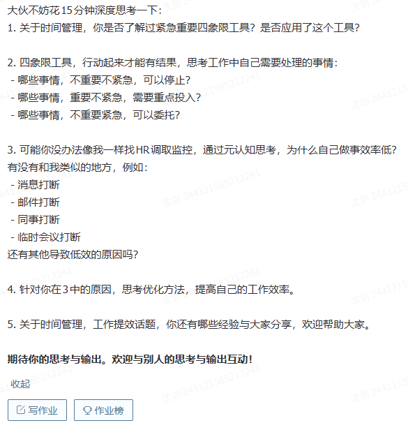 我之前没有想的问题。这个对我职业发展影响很大的问题:我的时间为什么总是不够用?
