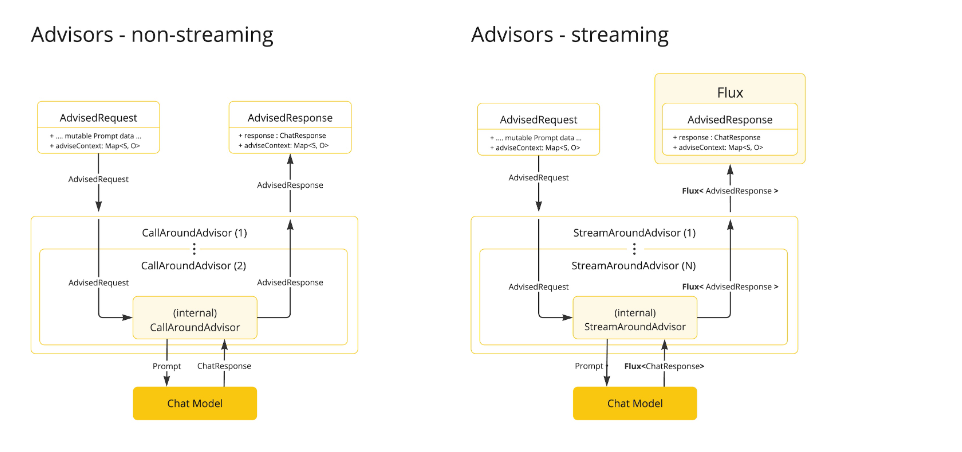 }看完这个之后,我们再来细品官方提供的Advisor和Chat Model交互的流程图: